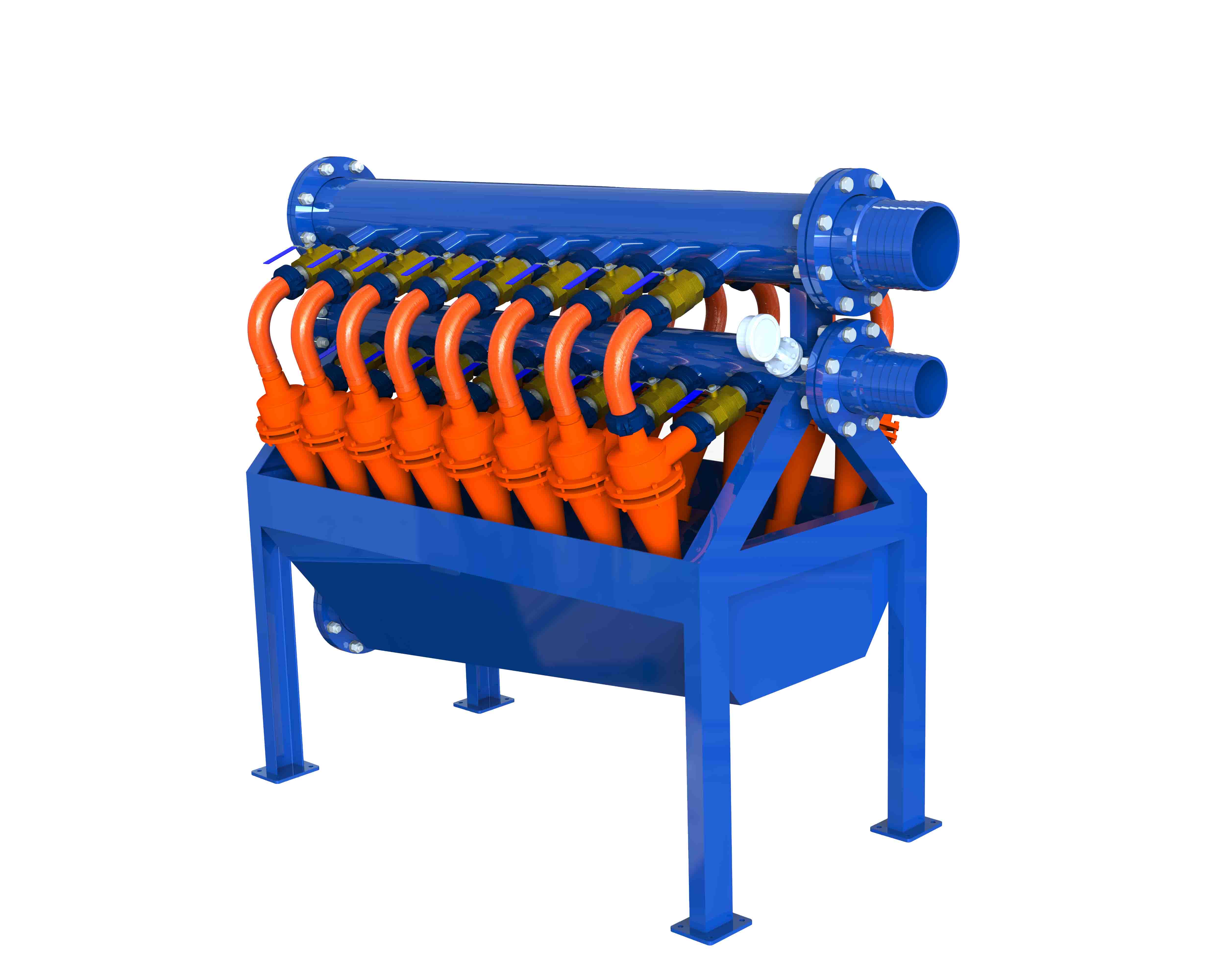 除泥器是處理鉆井液的三級(jí)固控設(shè)備,主要用于分離鉆井液中粒度為15-45μm的固相顆粒,除泥器是鉆井泥漿固控設(shè)備中的一種,在固控系統(tǒng)中,一般放在除砂器和鉆井液離心機(jī)之間,用于分離較小的固相顆粒,北鉆固控可根據(jù)客戶要求處理量的大小,選擇幾組旋流器組合成除泥器。 北鉆固控除泥器分為無(wú)底流篩式除泥器和帶底流篩式除泥器。 BZCN系列除泥器技術(shù)參數(shù) 型號(hào) BZCN100-6N BZCN100-8N BZCN100-12N BZCN100-16N 處理量 90m³/h 120m³/h 240m³/h 360m³/h 旋流器規(guī)格 4寸 旋流器數(shù)量 6個(gè) 8個(gè) 12個(gè) 16個(gè) 工作壓力 0.25-0.4MPa 分離顆粒 15μm-45μm 匹配振動(dòng)篩 BZS60 BZS752 防爆標(biāo)準(zhǔn) ExdIIBt4/IECEX/A-TEX 外形尺寸 1510X1360X1810mm 1510X1360X1810mm 1835X1430X2085mm 1835X1430X2085mm 北鉆除泥器特點(diǎn)和優(yōu)勢(shì): 1.旋流器材質(zhì)為100%純聚氨酯材料,根據(jù)不同的處理量生產(chǎn)配置不同規(guī)格的除泥器; 2.分離能力強(qiáng),分離范圍廣,可去除15μm到45μm的固體顆粒; 3.旋流器流出口采用噴嘴設(shè)計(jì),顆粒迅速排出,減少阻塞概率; 4.使用壽命長(zhǎng),重量輕,易于維護(hù),設(shè)計(jì)緊湊,占用空間??; 5.噪聲小,處理量大,篩網(wǎng)壽命長(zhǎng); 6.匹配底流篩采用國(guó)際知名品牌振動(dòng)電機(jī),意大利OLI電機(jī)或者美國(guó)Martin電機(jī); 7.主要電器元件選用西門子,施耐德或者ABB等國(guó)際品牌。