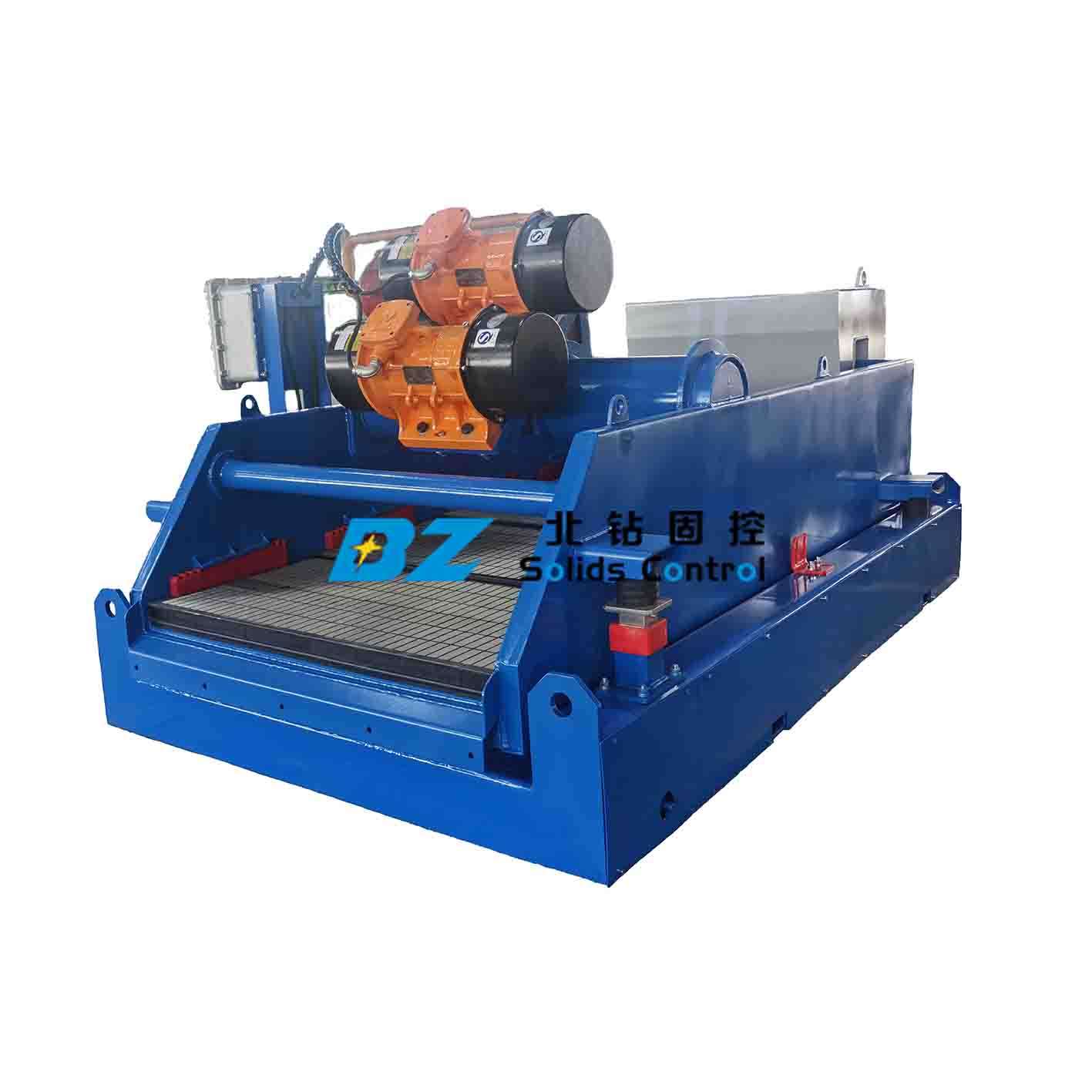 影響鉆井液振動篩篩網(wǎng)過快破損的主要因素有:篩網(wǎng)質(zhì)量、篩網(wǎng)的張緊力度、振動電機轉(zhuǎn)向、粘土堆積等。 過快破損原因: 1、鉆井液振動篩篩網(wǎng)質(zhì)量不合格,篩網(wǎng)一般有上部的篩分層和下部的受力層,要求這2層之間緊密貼合,如果篩網(wǎng)預(yù)張緊工藝差,當篩網(wǎng)底部的受力層繃緊時,篩分層沒有拉緊,工作時鉆屑的拋擲力大大減小,不能排出鉆屑。 2、鉆井液振動篩篩網(wǎng)張緊力度不夠,以致引起振動篩篩網(wǎng)顫動,通常沿篩網(wǎng)邊緣或包邊壓條處斷裂或損壞。 3、振動電機轉(zhuǎn)向錯誤,在調(diào)試振動電機轉(zhuǎn)向時,現(xiàn)場操作人員根據(jù)以往單軸振動篩或直線振動篩的使用經(jīng)驗,認為只要鉆屑往前走就行,但此方法并不適用于平動橢圓振動篩。若電動機錯誤地朝內(nèi)側(cè)旋轉(zhuǎn),拋射角雖也是向前45°,但是鉆屑有向后滾動的力,這時鉆屑向前運移的速度要慢很多,在振動篩篩網(wǎng)上停留時間長,甚至會導(dǎo)致鉆屑無法排出。 4、粘土堆積,振動幅度過小,在聚合物鉆井液條件下很難篩分,不能有效克服鉆屑(粘土)的粘性力,導(dǎo)致鉆屑在篩網(wǎng)上堆積而快速損壞篩網(wǎng)。 解決方法3: ?、俸Y箱運轉(zhuǎn)時,按電控箱的停止按鈕,此時振動篩會慢慢停下來,觀察側(cè)板上的小點在振動篩運轉(zhuǎn)時形成的橢圓軌跡,向出砂口滾動為正確轉(zhuǎn)向; ?、谛断抡駝悠髯o罩,檢杏偏心塊是否均向外側(cè)旋轉(zhuǎn); ③調(diào)換電控箱進線電源中的任意2根相線,在篩網(wǎng)上面撒一些砂子,排砂速度更快的一種即是正確的方向。 解決方法4: ?、僭龃笳駝臃?; ②用噴灑的水沖篩網(wǎng)和鉆屑,減小鉆屑的粘性,但這個方法僅適合允許添加水的場合; ?、壅{(diào)整排砂口端的篩網(wǎng)角度向下,利于巖屑靠重力排出,但是可能會導(dǎo)致跑漿; ?、芨鼡Q振動篩篩網(wǎng)的目數(shù)或調(diào)整單篩的流量,保證鉆井液的流止點接近篩網(wǎng)出口,讓鉆屑在鉆井液的潤滑作用下順利排出。